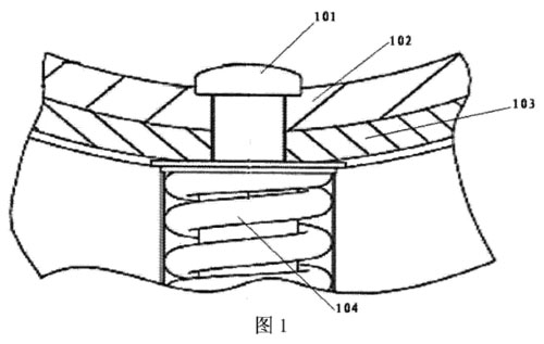 電磁流量計是一種根據(jù)法拉第電磁感應定律來測量測量管內(nèi)導電介質體積流量的感應式儀表。電磁流量計中設置有電極,電極具有電極頭。圖1為現(xiàn)有的電磁流量計的部分結構的截面圖。如圖1所示,電磁流量計中布置有內(nèi)襯102、測量管的管壁103、用于支撐電極的支撐彈簧104以及電極的電極頭101,等等。在圖1中,電極的電極頭101以裸露的方式布置。