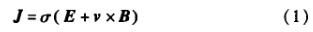 式中,J為電流密度;為流體電導率;E為電場強度;為流體運動速度;B為磁感應強度。