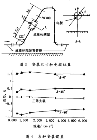 1)在本試驗安裝條件下,流量傳感器電極軸在A一90。位置時zui大誤差為一1.2,A一0。位置時為+1.6,A一45。位置時為0.5;與正常安裝條