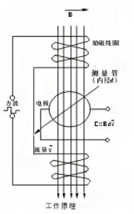 分體型電磁流量計(jì)的轉(zhuǎn)換器可遠(yuǎn)離現(xiàn)場惡劣環(huán)境,電子部件檢查、調(diào)整和參數(shù)設(shè)定就比較方分體式電磁流量計(jì)測量原理是基于法拉第電磁感應(yīng)定律。流量計(jì)的測量管是一內(nèi)襯絕緣材料非導(dǎo)磁合金短管。兩只電極沿管徑方向穿通壁固定在測量管上。其電極頭與襯里內(nèi)表面基本齊平。勵磁線圈由雙向方波脈沖功磁時,將在與測量管軸線垂直的方向上產(chǎn)生一磁通量密度為B的工作磁場,此時,如果具有一定電導(dǎo)率的液體流經(jīng)測量管,將切磁力線感應(yīng)出電動勢E。電動勢E正比于磁通量密度B,測量管內(nèi)徑d與平均流速V的乘積。電動勢E(流量信號)由電極檢出并通過電纜送至轉(zhuǎn)換器。轉(zhuǎn)換器將流量信號放大處理后,可顯示流體流量,并能輸出脈沖,摸擬電流等信號,用于流量的控制和調(diào)節(jié).