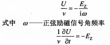 渦電場法的理論基礎為:電磁流量計測量過程中,交變的磁場將伴隨產生渦電場,該電場不受流速分布的影響,通過測量電磁流量計電極所在位置渦電場強度測取一次傳感器轉換系數。當一次傳感器管段內速度分布平坦時,對于正弦信號勵磁磁場的一次傳感器,有效區域內任意點的速度v、電勢U以及渦電場強度在管段軸向方向的分量Ez具有如式,所示關系,對于矩形脈沖信號勵磁磁場則如式所示向
