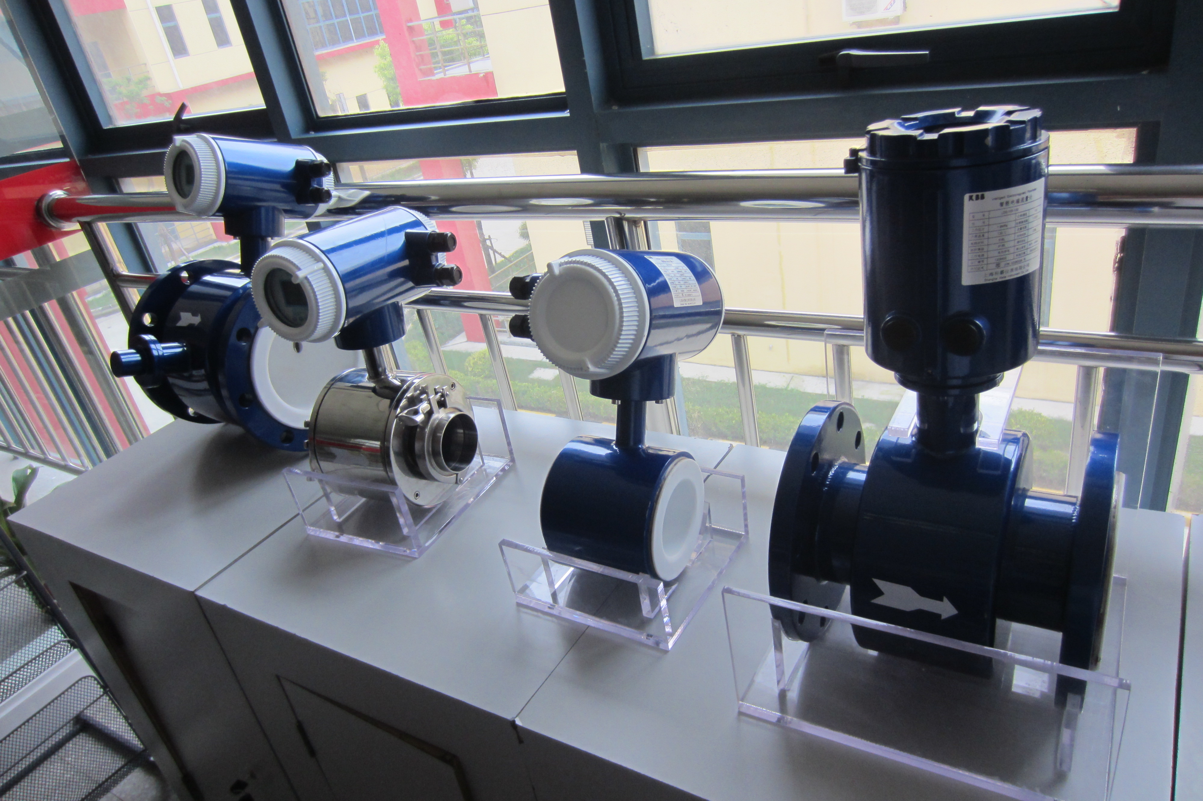 電磁流量計由傳感器和轉換器兩部分組成,是種測量導電介質體積流量的感應式儀表。它根據法拉第電磁感應原理,在與測量管軸線和磁力線相垂直的管壁上安裝一對檢測電極。當導電液體沿測量管軸線運動時,導電液體切割磁力線產生感應電勢,磁感應電勢由兩個檢測電極檢出,數值大小與流量成比例。傳感器將感應電勢作為流量信號傳送到轉換器,經放大變換濾波及系列的數字處理,用帶背光的點陣式液晶顯示瞬時流量和累積流量。