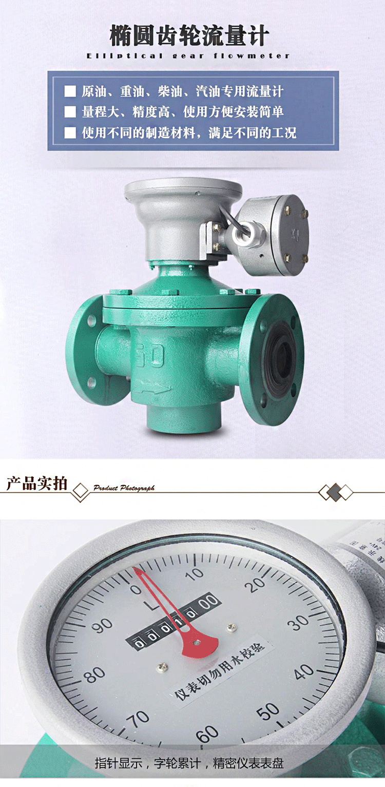 1、流量測量與流體的流動狀態無關,這是因為橢圓齒輪流量計是依靠被測介質的壓頭推動橢圓齒輪旋轉而進行計量的。