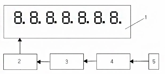 如圖1所示,本實用新型實施例所提供的一種用于電磁流量計的遠距離流量顯示裝置,包括LED數(shù)碼管1和LED驅(qū)動芯片2,其特征在于:還包括單片機3、RS485通信芯片4和RS485通信連接件5